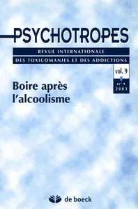 Boire après l'alcoolisme Vol. 9, 2003/1 - pagesPages 5 à 6Boire après l'alcoolismePar François HervéPages 7 à 26Boire après l'alcoolismePar Roland Lefebvre, Michel LegrandPages 27 à 59Autocontrôle et proto-professionnalisation chez des usagers de droguesPar Jean-Yves TréposPages 61 à 75Facteurs de résilience dans les toxico-dépendancesPar Bruno DidierPages 77 à 93Représentation sociale de la drogue chez les jeunes GrecsPar Ioannis KaterelosPages 95 à 108Hypnose et toxicomanie : la remobilisation des processus de penséePar Christian MielPages 109 à 117Qualité des services ou qualité des soins ?Par Umberto NizzoliPages 119 à 120Notes de lecture