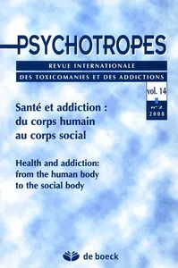 Santé et addiction : du corps humain au corps social Vol. 14, 2008/2 - pagesPages 5 à 7Santé et addiction : du corps humain au corps socialPar Michel HautefeuillePages 9 à 21À son corps défendant. Par Grégory LambrettePages 23 à 45Les marques corporelles des sociétés traditionnelles : un éclairage pour les pratiques contemporainesPar Bruno RouersPages 47 à 59Entre santé et expérience de la maladiePar Janine PierretPages 61 à 80Addictions et pathologisation de l'existence : aspects psychosociauxPar Amnon Jacob SuissaPages 81 à 91Une jouissance trop promisePar Jacqueline Barus-MichelPages 93 à 111La ritualité héroïnomaniaque : retour à la « vie nue », épreuve de la Communitas et processus identitairePar Pascale Peretti