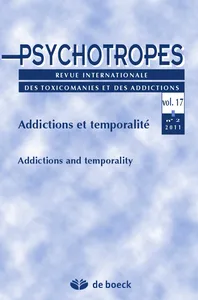 Addictions et temporalité Vol. 17, 2011/2 - pagesPages 5 à 8Addictions et temporalitésPar Michel HautefeuillePages 9 à 17L'ennui comme expérience du tempsPar Pascal DavidPages 19 à 38Le temps des consommations comme oubli du présentPar Sophie Le GarrecPages 39 à 53In Vino Vieillissimo : au temps du « plus jamais », dernier plaisir ou ultime tabou ? À propos des vieux addictésPar Véronique Griner-AbrahamPages 55 à 63Addictions et temporalité le temps du soin : maintenant ou jamais !Par Yves GuillermainPages 65 à 73Prévention et temporalitéPar Philippe LecorpsPages 75 à 88Les hospitalisations programmées pour des patients alcoolo-dépendants : une façon de redonner un mouvement au temps ?Par Stéphanie Tonnelier, Christine Lemaire, Pierre BodenezPages 89 à 97Hyperactivité, addictions et perspectives thérapeutiquesPar Michel HautefeuillePages 99 à 118Les nouveaux réseaux sociaux sur internetPar Serge Tisseron