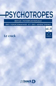 Le crack Vol. 29, 2023/4 - pagesPages 7 à 29La construction du crack à Paris comme un « problème » épidémiologique, de prise en charge et d’écologie urbainePar Marie Jauffret-Roustide, Sayon Dambélé, Camille de Azevedo Martinho PortoPages 31 à 53Vivre avec le conflit : l’expérience d’Espoir Goutte d’Or dans l’accueil des consommateurs de crack à ParisPar Léon GomberoffPages 55 à 77Le collectif AGORA : faire émerger une parole collective des usager.es de crackPar AGORAPages 79 à 103Disparaître dans le crack pour subsisterPar Mario Blaise, Carola ArendsPages 105 à 121Pistes actuelles d’expérimentations pharmacologiques dans le traitement de la dépendance à la cocaïnePar Nicolas Marie, Florence NoblePages 125 à 149Place des conduites addictives dans les histoires de travail et de chômagePar Gilles Amado, Dominique Lhuilier