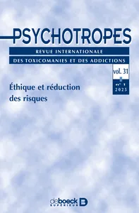 Éthique et réduction des risques Vol. 31, 2025/1 - pagesPages 5 à 9ÉditorialPar Pierre PoloméniPages 13 à 18Éthique d’intervention, éthique de responsabilitéPar Catherine DelormePages 19 à 42La RdRD dans tous ses états : les pratiques d’accompagnement en CSAPA et CAARUDPar Caroline Protais, Maitena MilhetPages 43 à 61Accepter la contingence du monde pour mieux le naviguerPar Grégoire CleirecPages 63 à 71Les liaisons dangereuses entre morale et science : une application pratique au cas de la réduction des risquesPar Alhy LeleuPages 73 à 91Entre aliénation et émancipation : enjeux éthiques de la réduction des risquesPar Brice MalletPages 95 à 119Acceptabilité d’une thérapie aversive en réalité virtuelle utilisant la cybersickness chez des patients avec troubles de l’usage de substance – une étude prospective, observationnelle et multicentriquePar Auxane Danjean, Caroline Dubertret, Yann Le Strat, Anne-Gaëlle Fauck, Marie Peyrat, Elisabeth Cheraitia, Manon Le Bozec